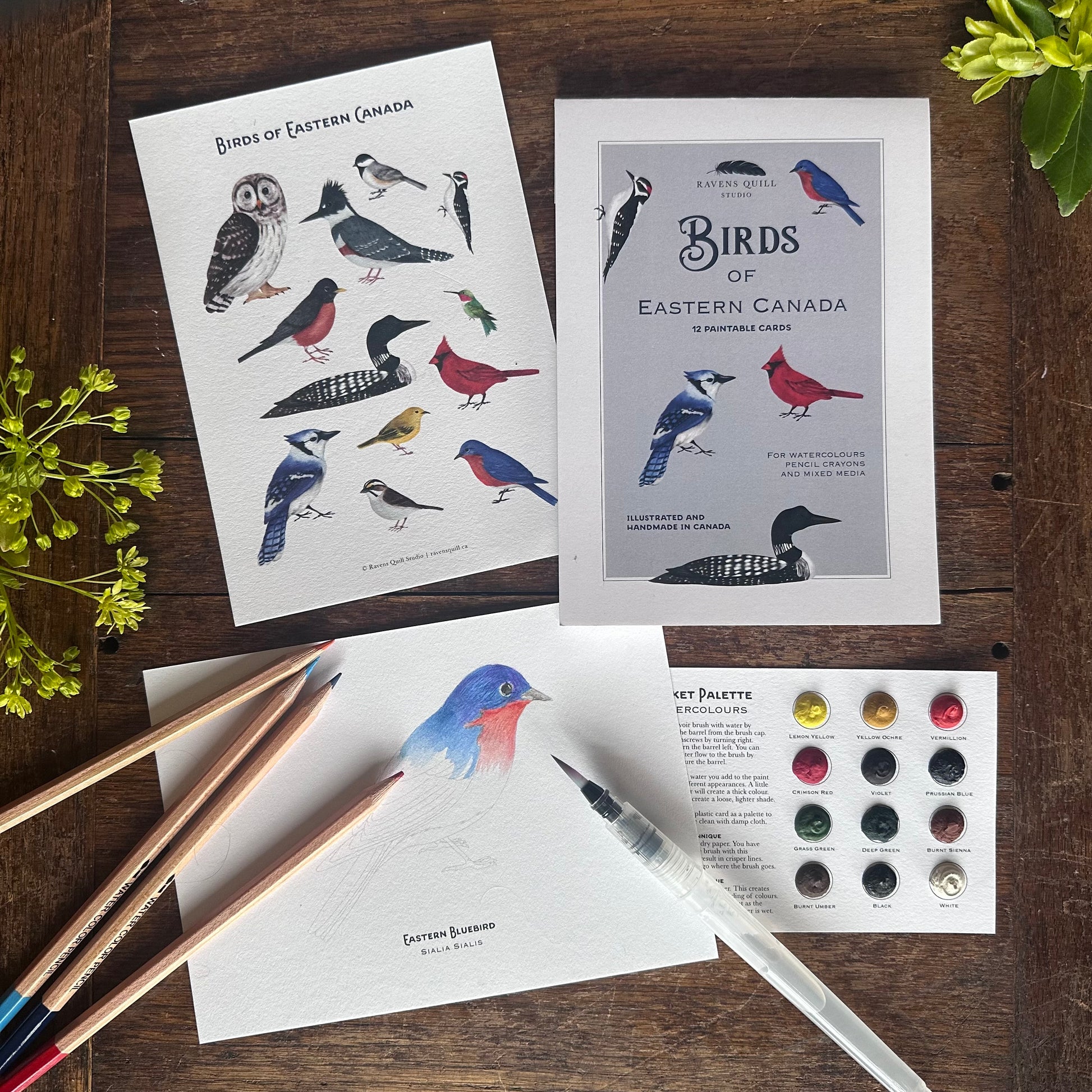 Let your imagination fly with the Birds of Eastern Canada Paintable Card Set. This one-of-a-kind kit showcases 12 stunning birds from Eastern Canada for you to colour. The cards are made of a sturdy 90lb 100% cotton paper perfect for watercolours, pencil crayons, markers, pastels and more! And with easily-removable pages, you can either frame your masterpiece or mail it as a postcard. A truly bird-tastic gift for any avian enthusiast!