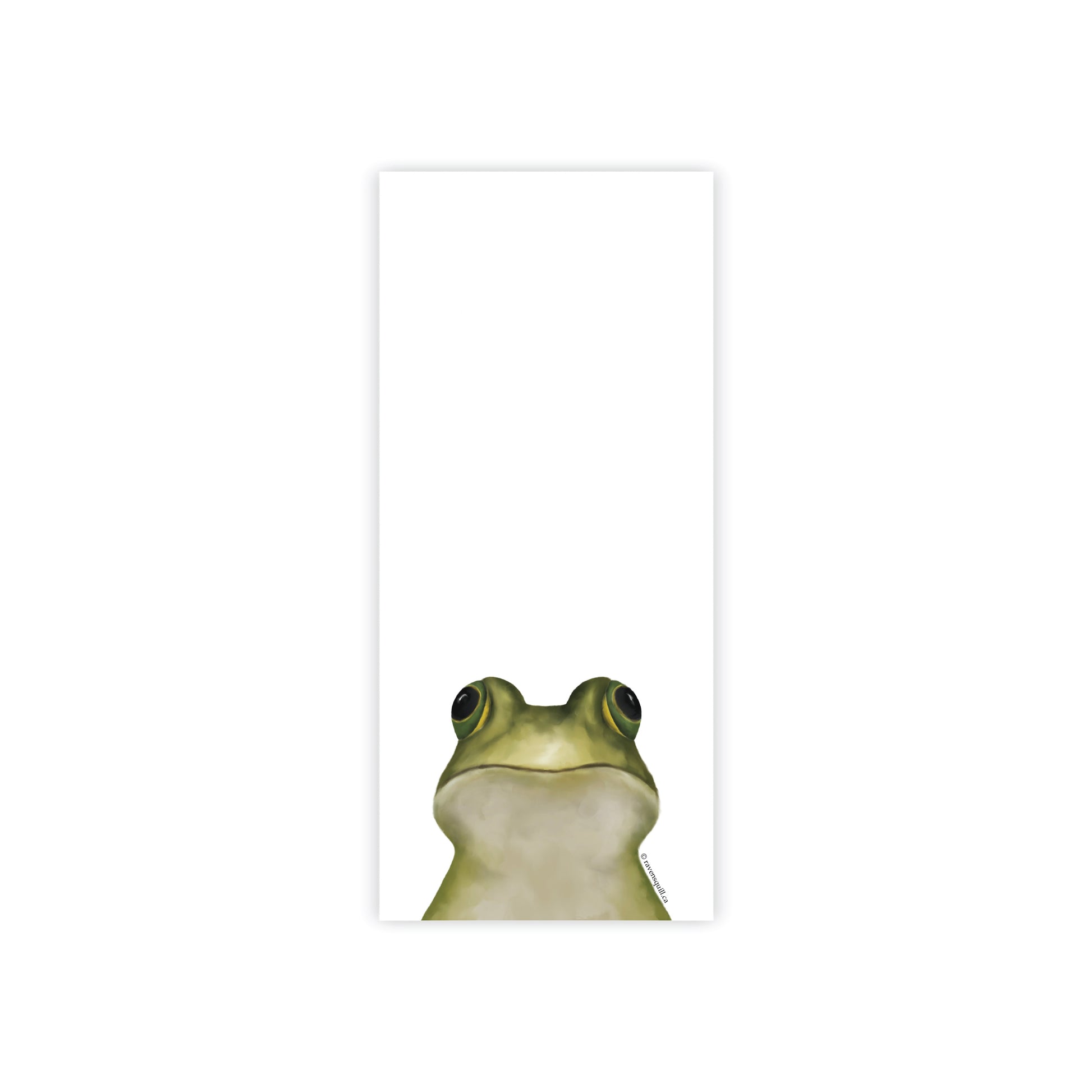 Get ready to hop to it with this illustrated Bull Frog notepad! With its cute design and convenient size (3.5" x 8"), you'll be sure to croak out all your notes and doodles in style. Perfect for any frog-lover or stationery enthusiast, this notepad will make your writing experience ribbit-ing!