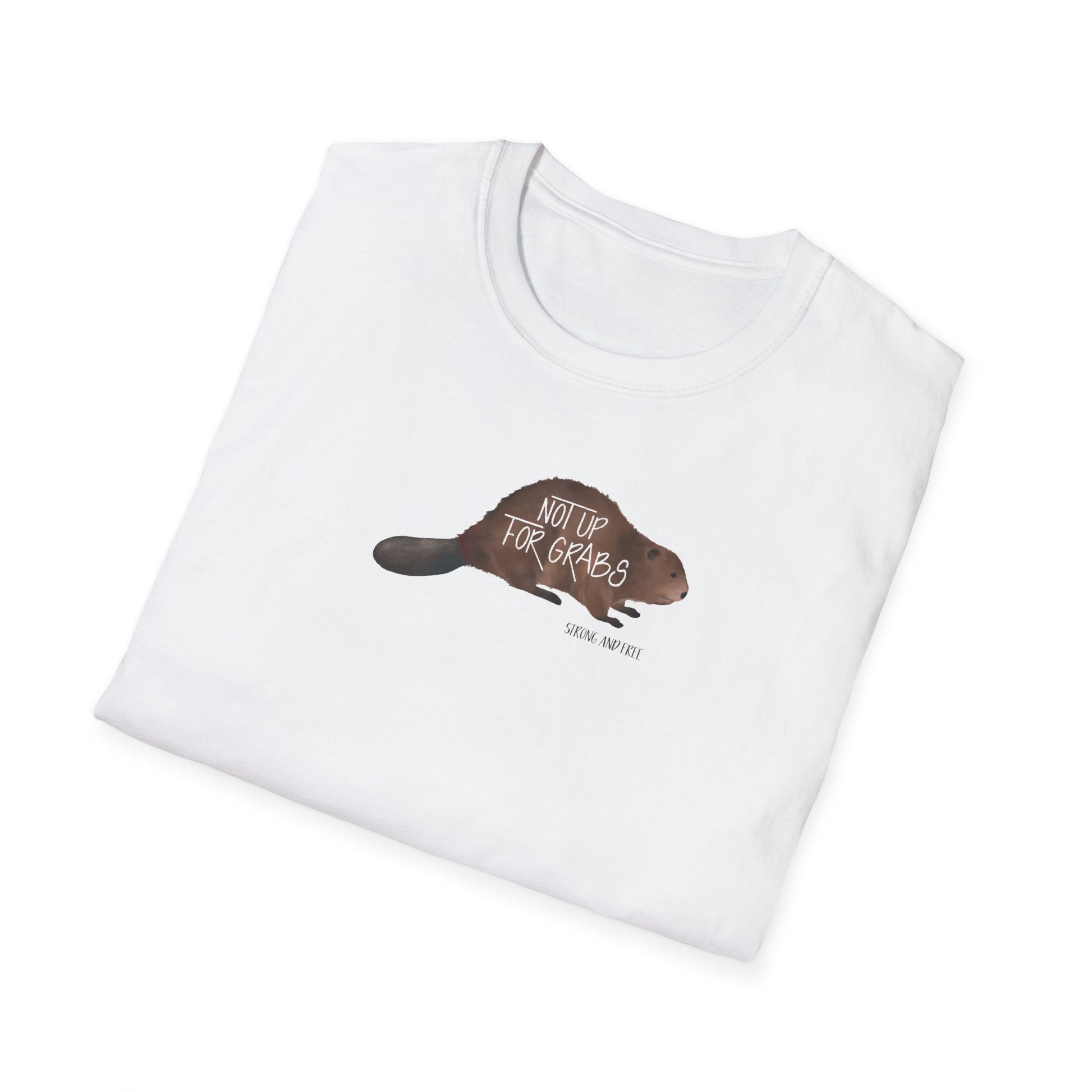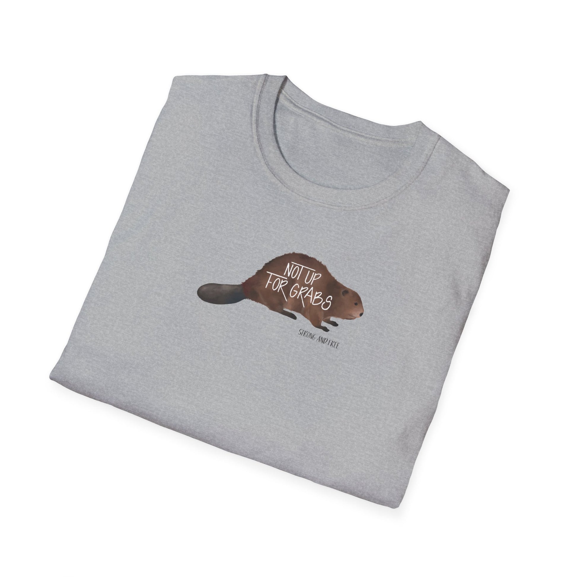 CANADA IS NOT UP FOR GRABS! This unisex t-shirt showcases an illustrated beaver, making it a comfortable and stylish way to express your Canadian pride. Designed for everyday wear, it brings a relaxed vibe that fits seemlessley into any casual occasion. Whether you're heading out with friends for some poutine, lounging on the dock by a lake with an ice cold brewsky, or enjoying a game of street hockey. Eco-conscience shoppers will love that it is crafted from ethically sourced materials, ensuring you're not only looking good but feeling good too!