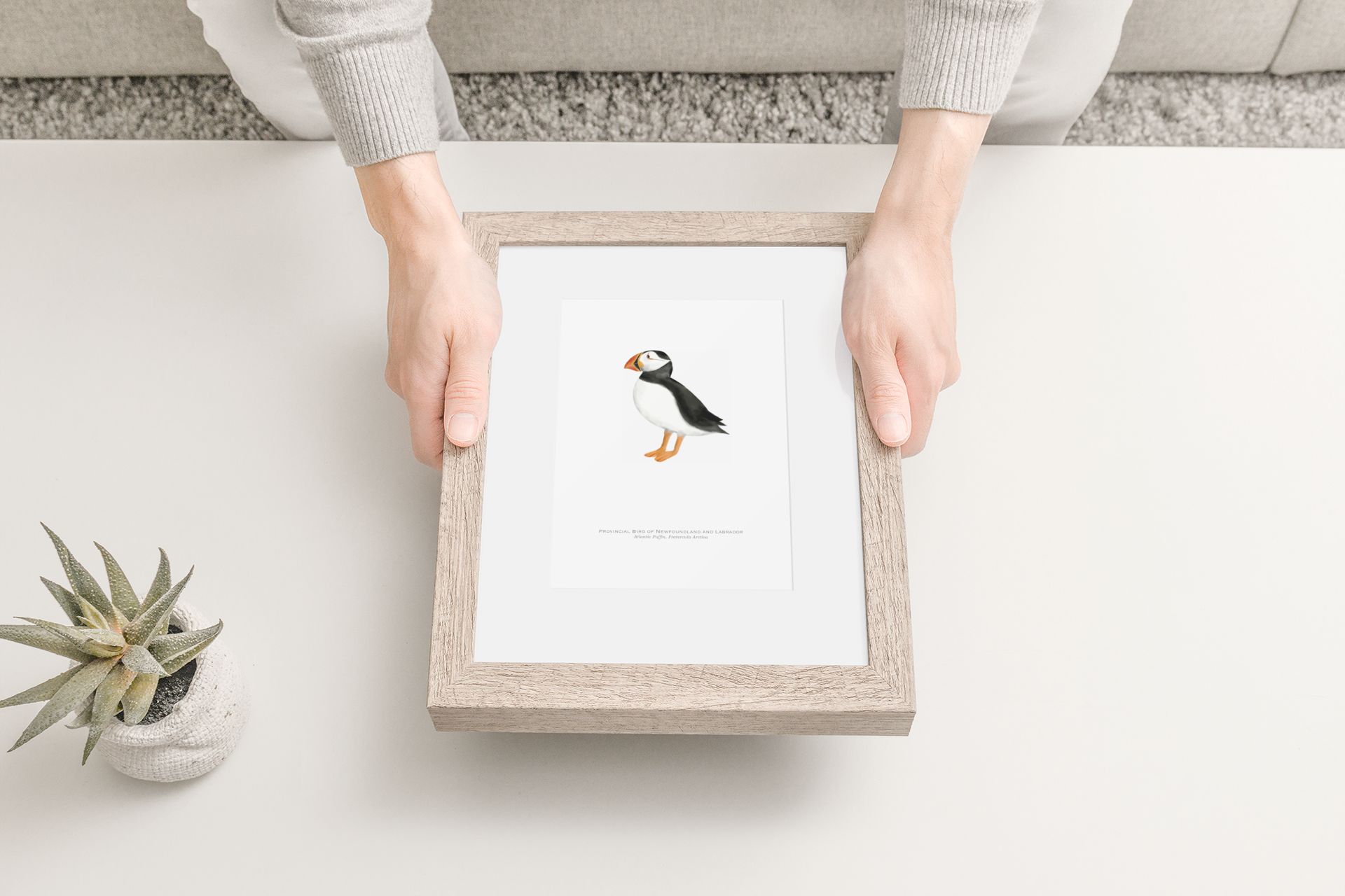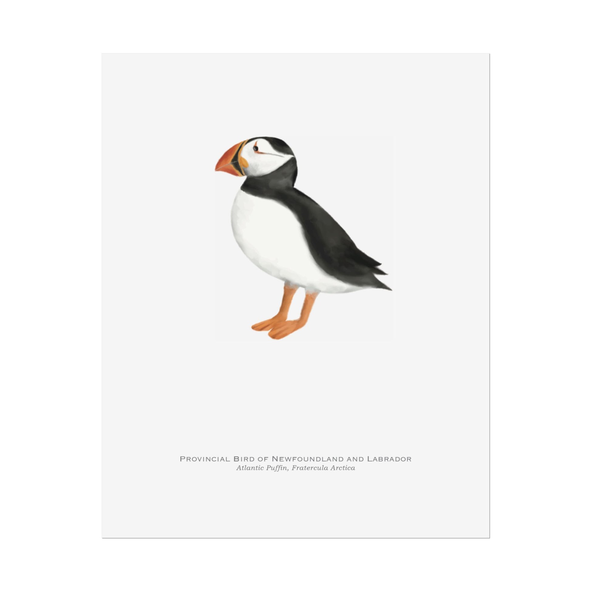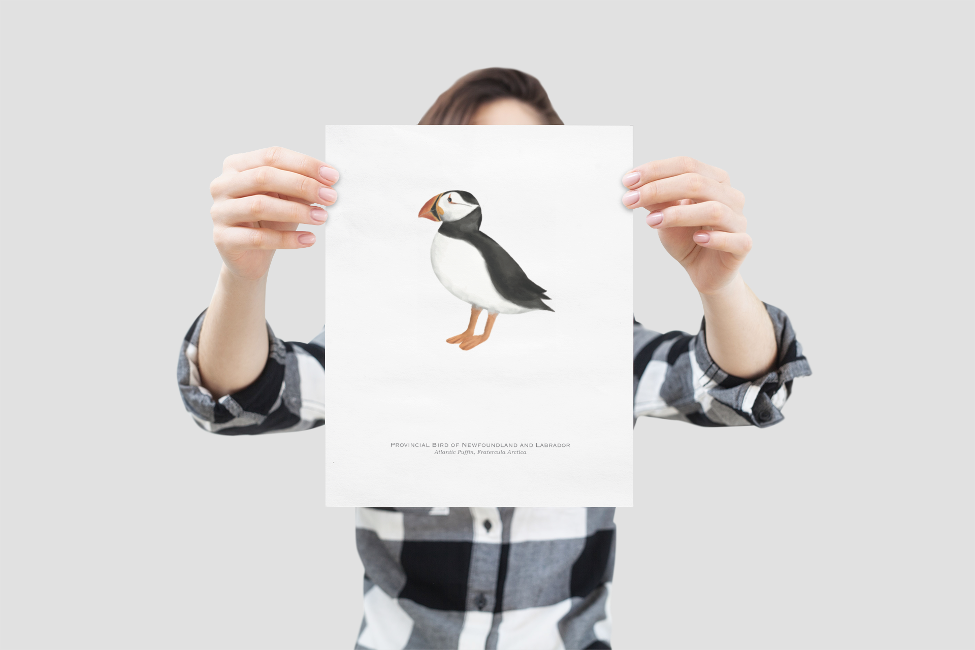 This print features a beautiful illustration of the provincial bird of Newfoundland and Labrador, the Atlantic puffin, and brings a touch of nature to your space. Perfect for bird lovers and Canadian wildlife enthusiasts, this poster adds a pop of colour and charm to any room.