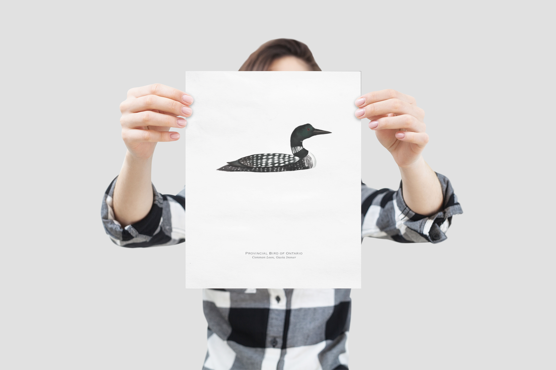 This print features a beautiful illustration of the provincial bird of Ontario, the common loon, and brings a touch of nature to your space. Perfect for bird lovers and Canadian wildlife enthusiasts, this poster adds a pop of colour and charm to any room.