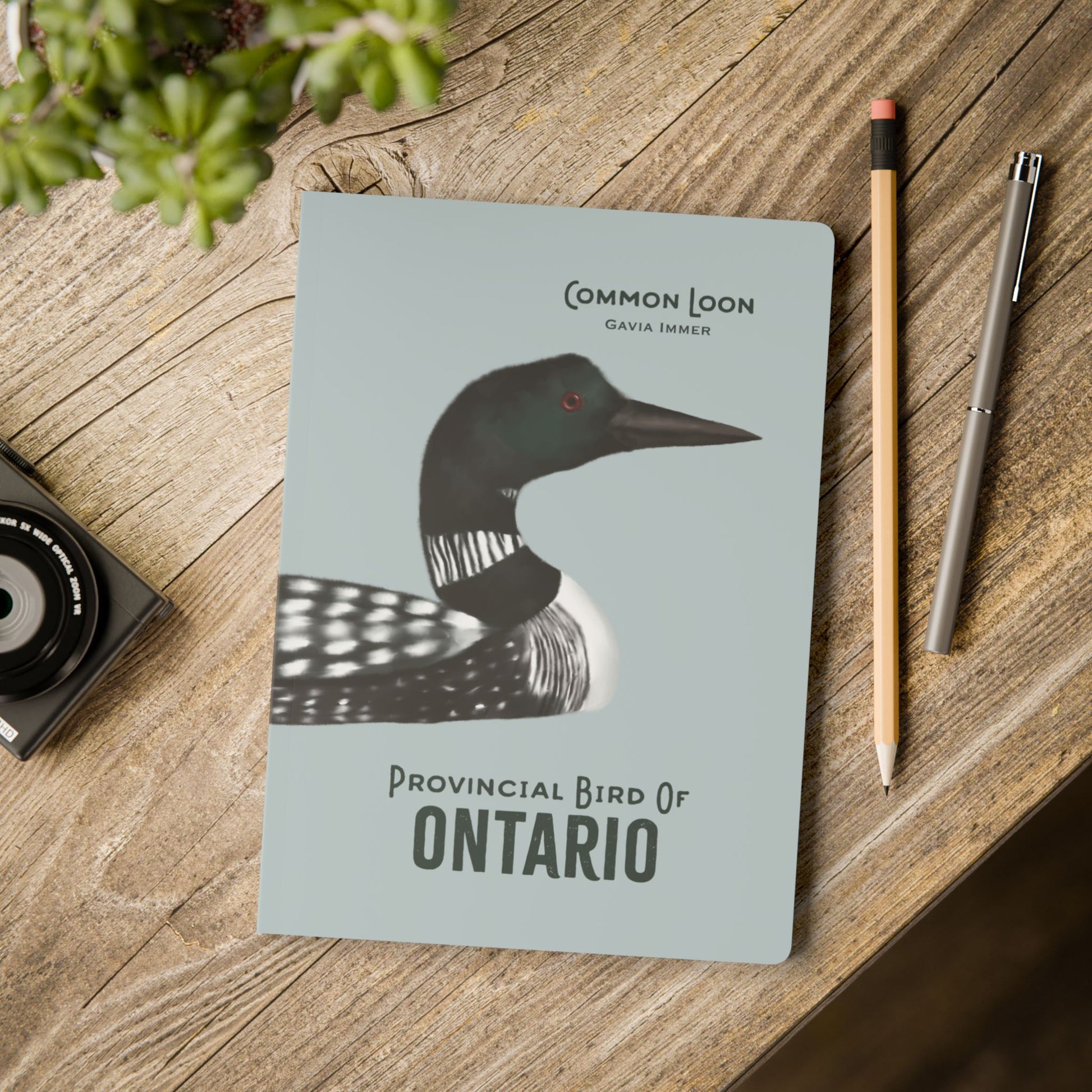 This notebook boasts a captivating illustration of Ontario's Provincial Bird, the Common Loon. With its breathtaking design, you'll have a touch of Canada's natural beauty at hand for jotting down notes or doodles.