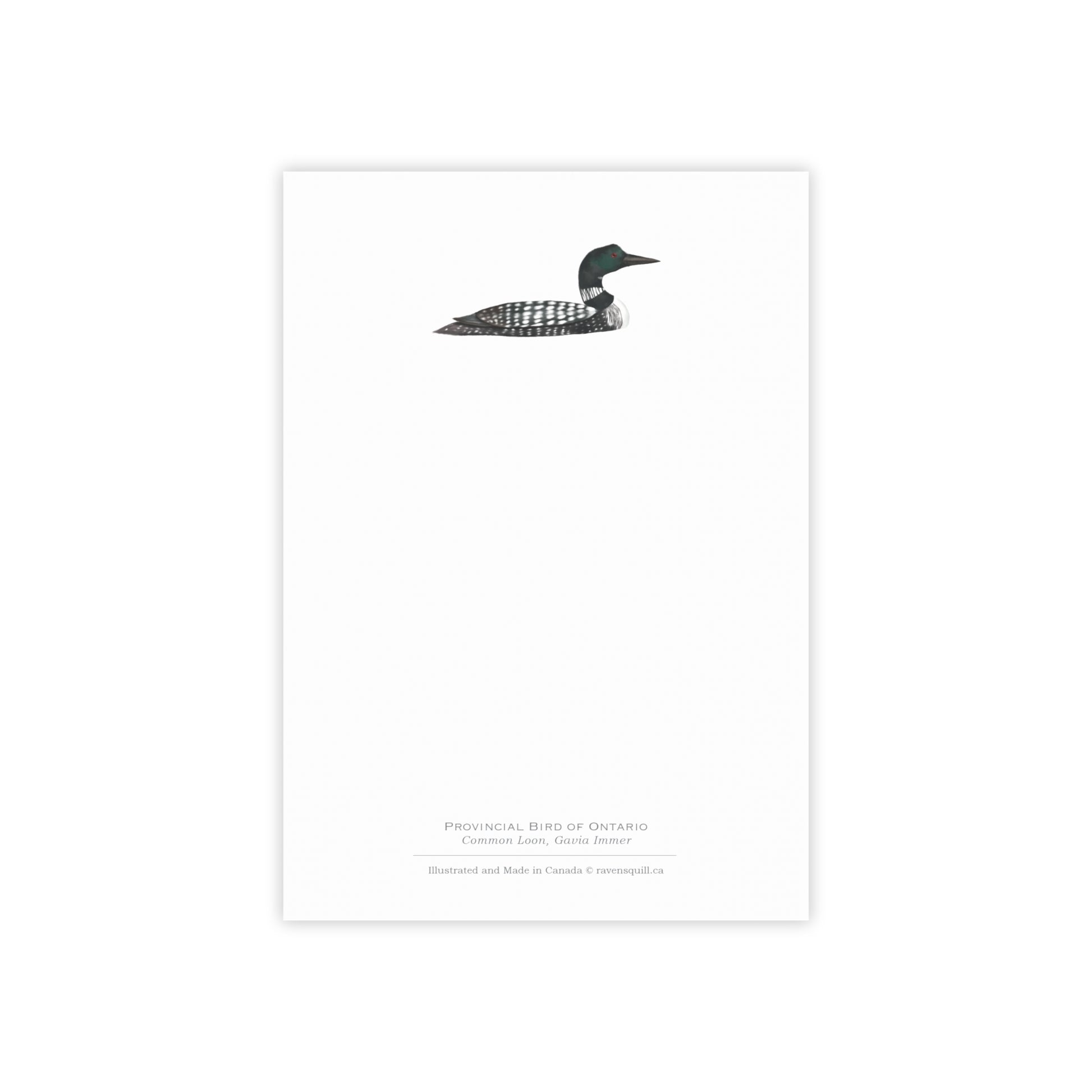 This notepad boasts a captivating illustration of Ontario's Provincial Bird, the Common Loon. With its breathtaking design, you'll have a touch of Canada's natural beauty at hand for jotting down notes or doodles.