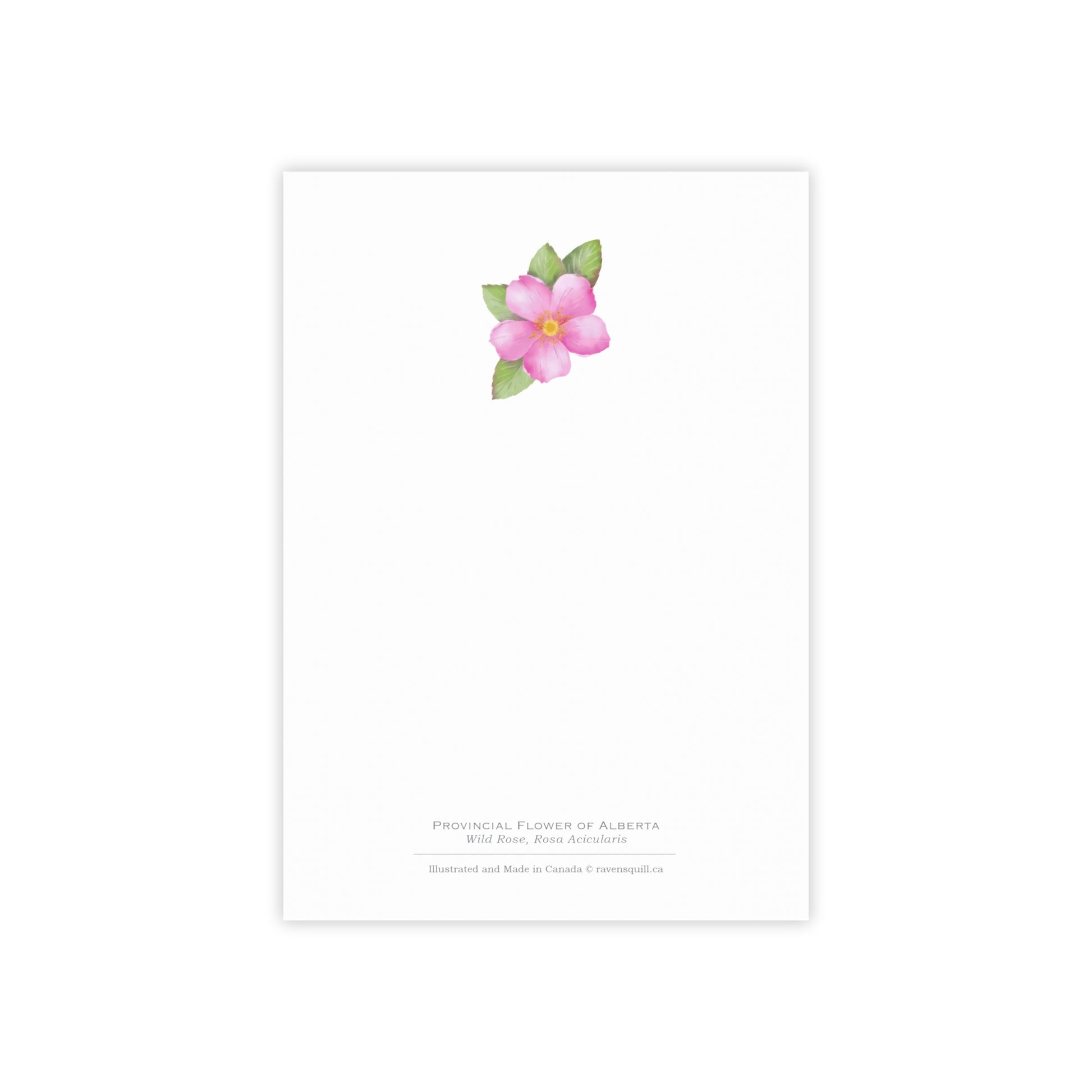 Featuring the stunning Wild Rose, this notepad showcases a beautiful illustration of the Provincial Flower of Alberta. You'll have a piece of natural Canadian beauty at your fingertips, perfect for jotting down notes or doodles
