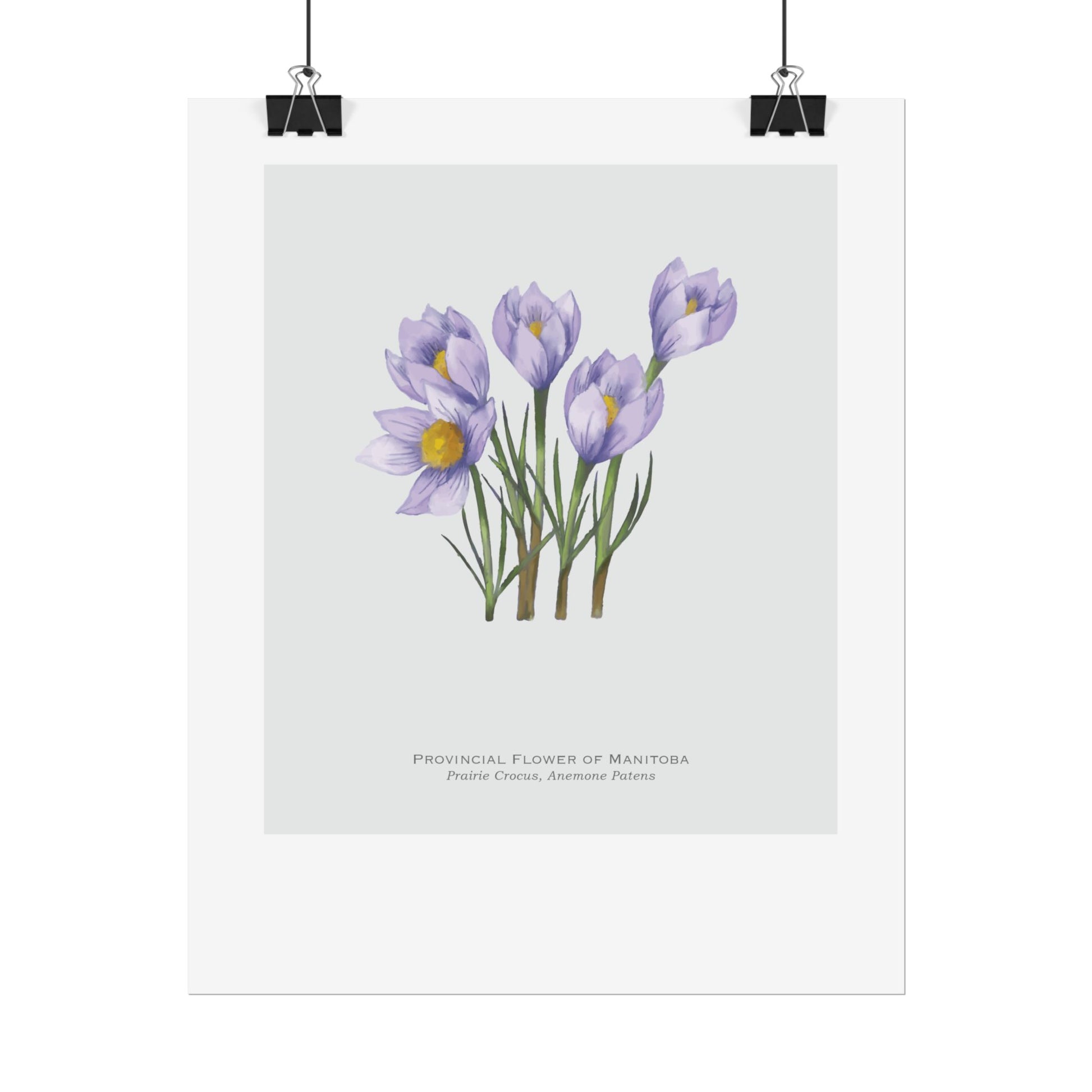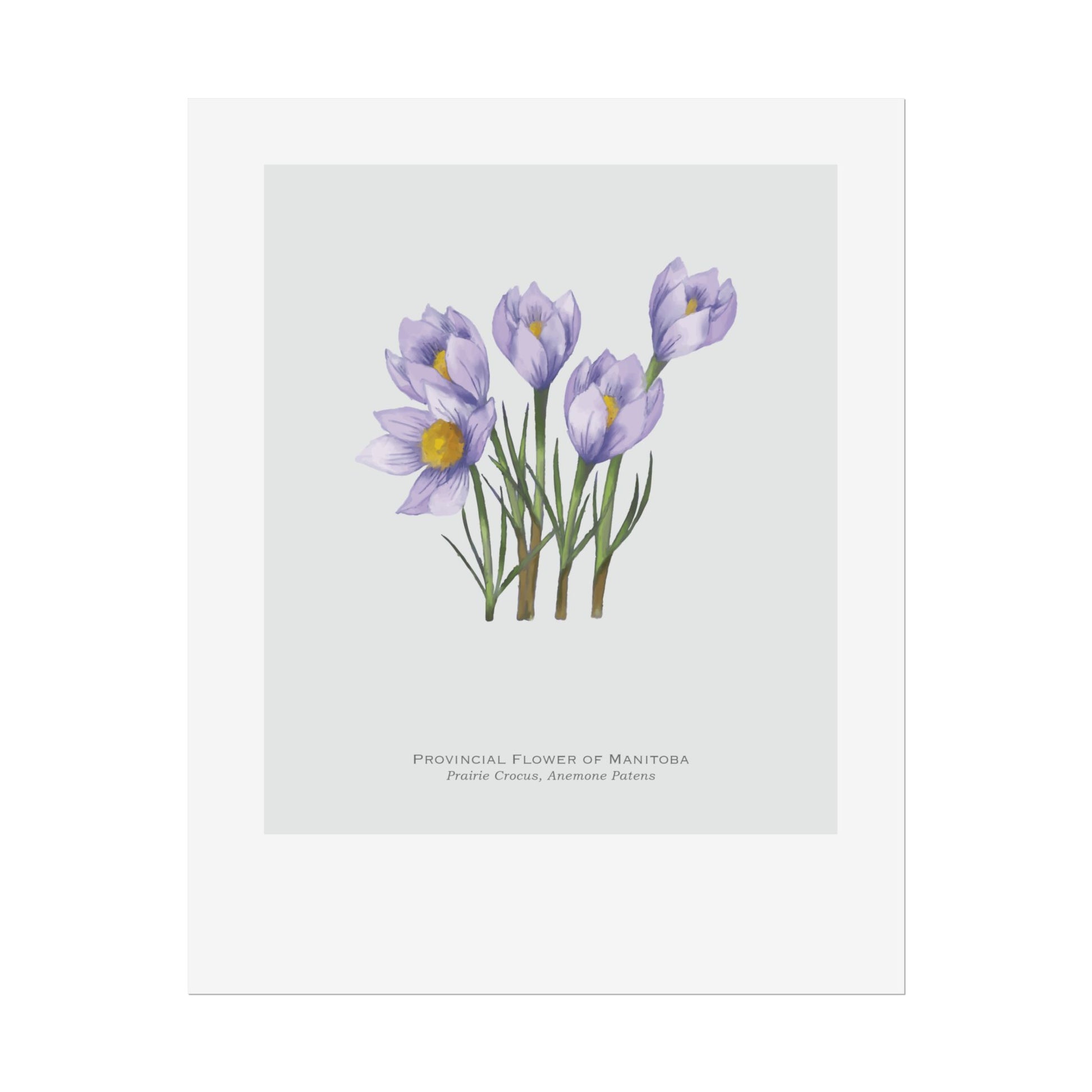 This print features a beautiful illustration of the provincial of Manitoba, the prairie crocus. Perfect for botanical enthusiasts and those who appreciate floral designs. Ideal for home decor, office spaces, or as a gift for nature lovers.