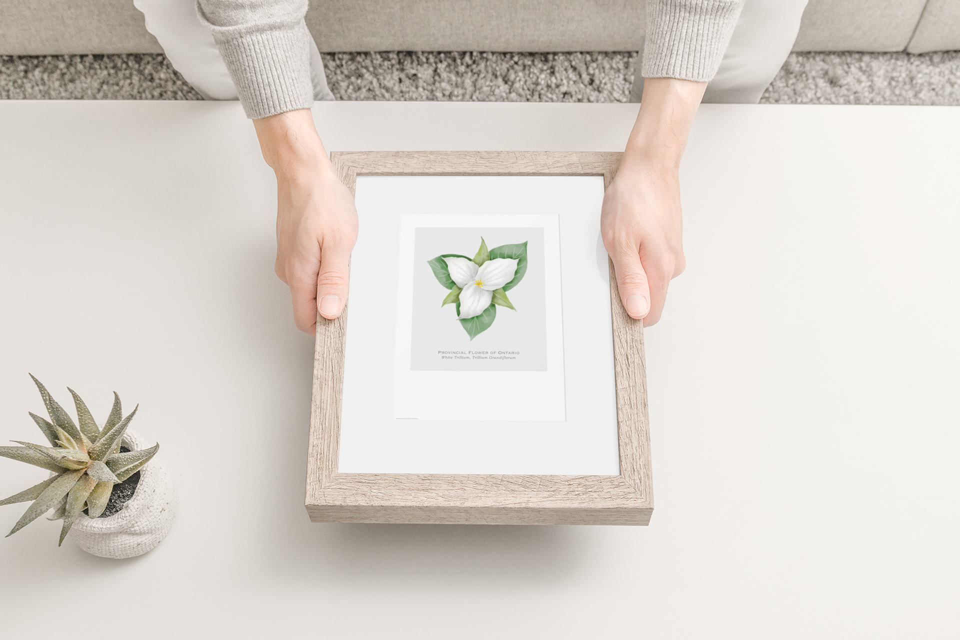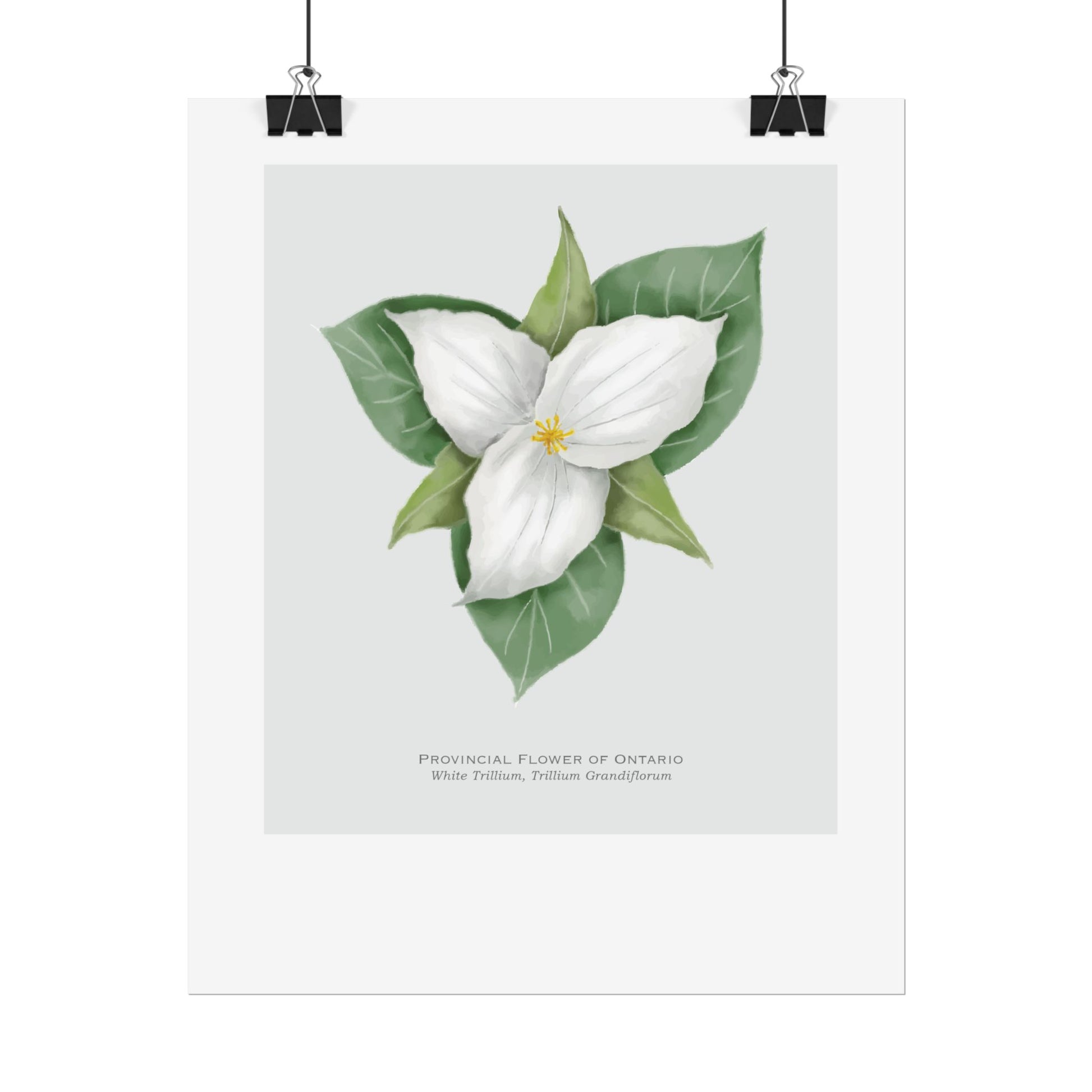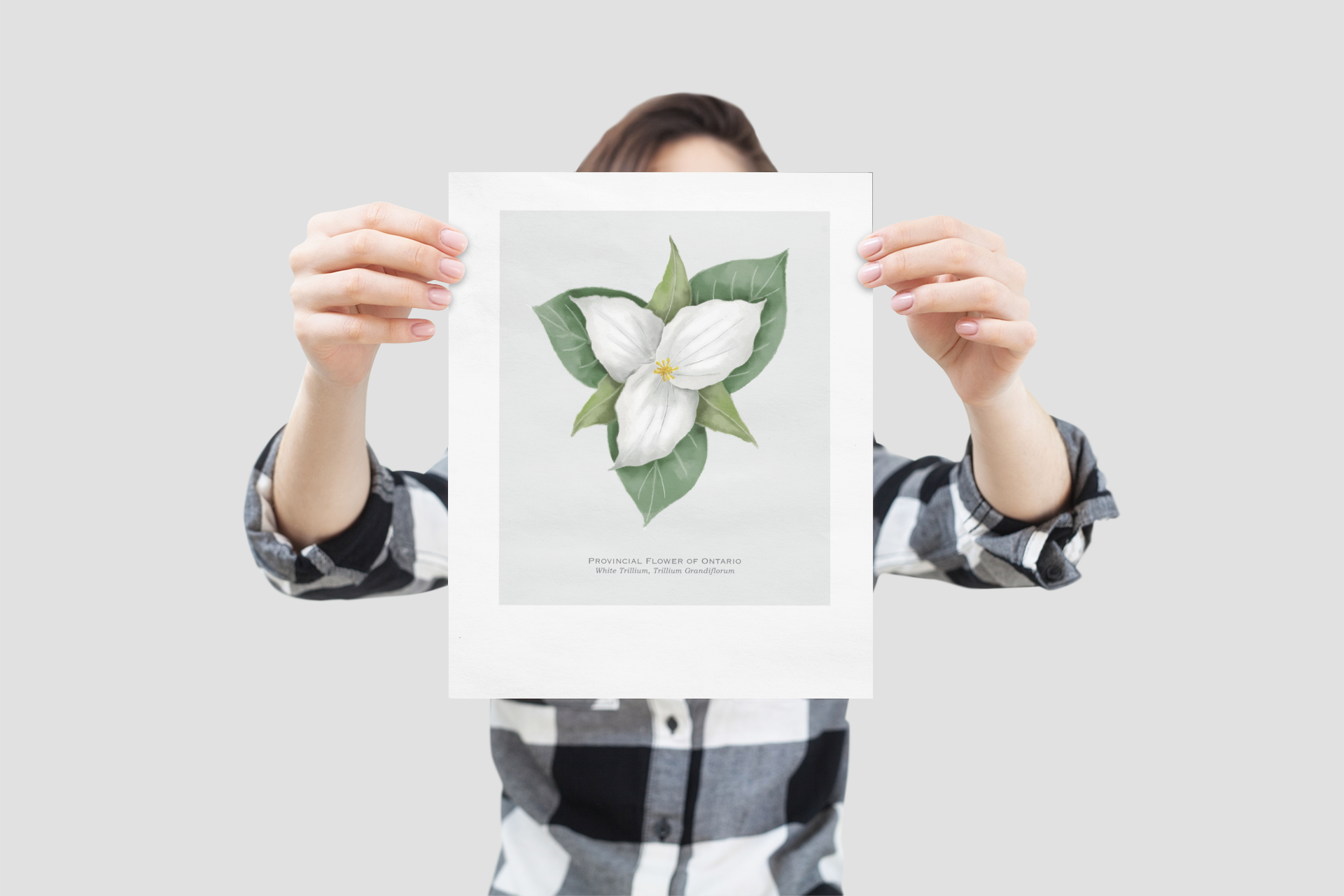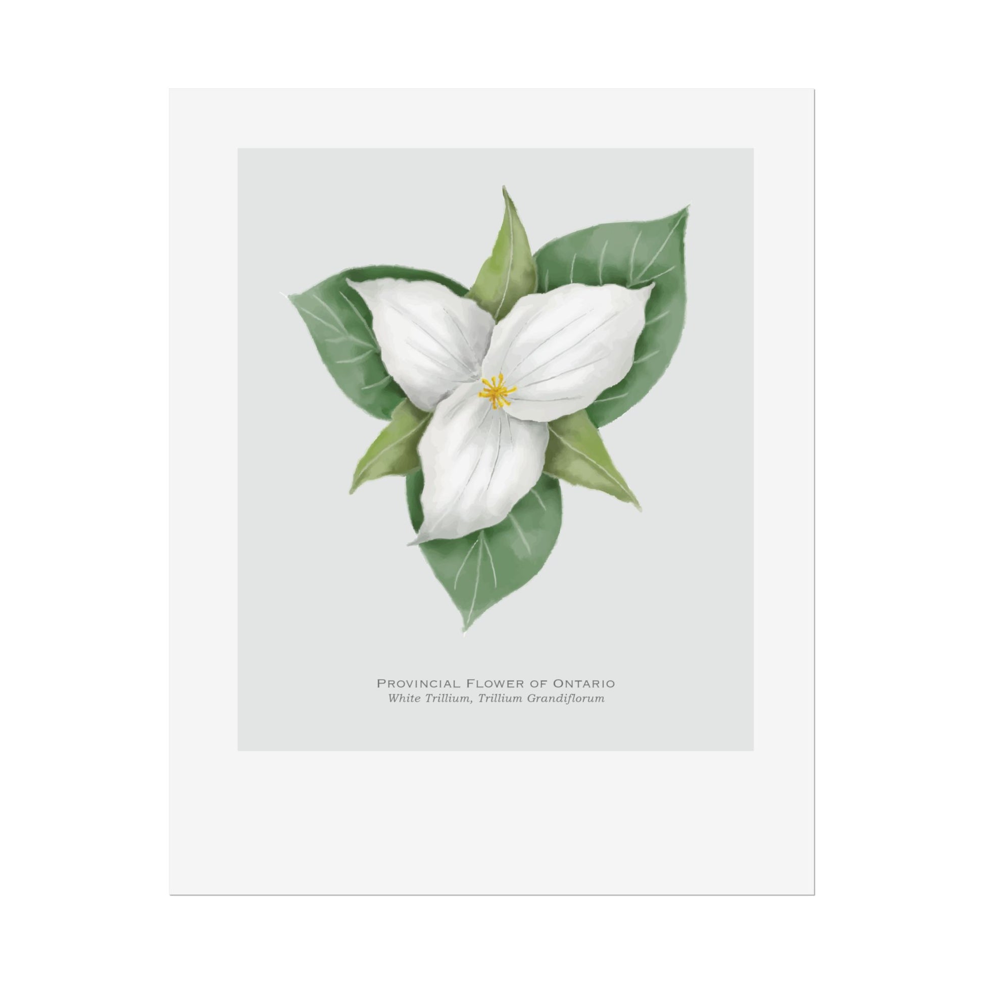 This print features a beautiful illustration of the provincial of Ontario, the white trillium. Perfect for botanical enthusiasts and those who appreciate floral designs. Ideal for home decor, office spaces, or as a gift for nature lovers.